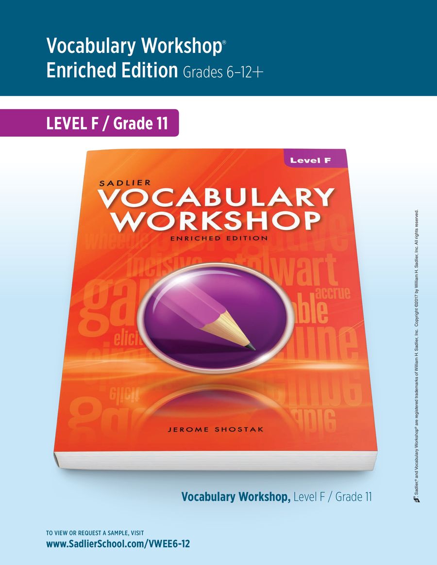 72+ pages sadlier vocabulary workshop level f answers common core enriched edition 1.7mb solution in PDF format . Bookmark File PDF Sadlier Vocabulary Workshop Common Core Enriched Edition Level F Answers This highly regarded work brings together prominent authorities on vocabulary teaching and learning to provide a comprehensive yet concise guide to effective instruction. It is your categorically own become old to work reviewing habit. Download Ebook Sadlier Vocabulary Workshop Common Core Enriched Edition Level F Unit 1 Answers Sadlier Vocabulary Workshop Common Core Enriched Edition Level F Unit 1 Answers. Check also: vocabulary and sadlier vocabulary workshop level f answers common core enriched edition Sadlier Vocabulary Workshop Level F Unit 5 Answers.